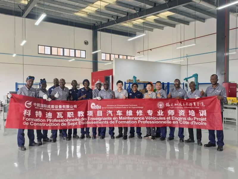 2023年9月至2024年1月,學院已出色完成中航科創(chuàng)成套公司(以下簡稱“中航成套”)科特迪瓦職教項目汽修專業(yè)在國內(nèi)為期4個月的師資培訓。2025年6至10月,我院教師團隊再次揚帆啟航、跨越萬里,遠赴科特迪瓦首都阿比讓ABOBO校區(qū),輸送“船政模式”職業(yè)教育品牌,圓滿完成了中航成套為期4個月的科特迪瓦職教項目汽車維修專業(yè)海外師資培訓。我院精心選派了梁霖鋒、張光葳和陳星三位骨干教師,組成專家團隊“送教上門”,創(chuàng)造性地采用了“培訓+調(diào)研+標準開發(fā)”的融合式方法,確保了培訓的高質(zhì)量與實用性??铺氐贤邍易畲蟮慕逃襟wJDMag刊發(fā)結(jié)業(yè)典禮報道,對專家團隊精湛的專業(yè)技能和無私的奉獻精神給予了高度贊譽。