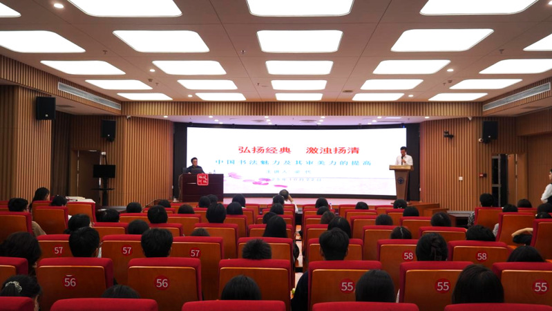 10月22日下午,學(xué)院特邀北京國創(chuàng)書院院長、著名書法家梁代教授作題為“弘揚(yáng)經(jīng)典 激濁清揚(yáng)——中國書法魅力及其審美力的提高”的專題講座。學(xué)院黨委書記陳宜大出席活動,學(xué)院相關(guān)部門負(fù)責(zé)人、墨韻協(xié)會與滄浪書法社成員及各二級學(xué)院書法愛好者共同參與?;顒佑纱嬙涸洪L王心金主持。