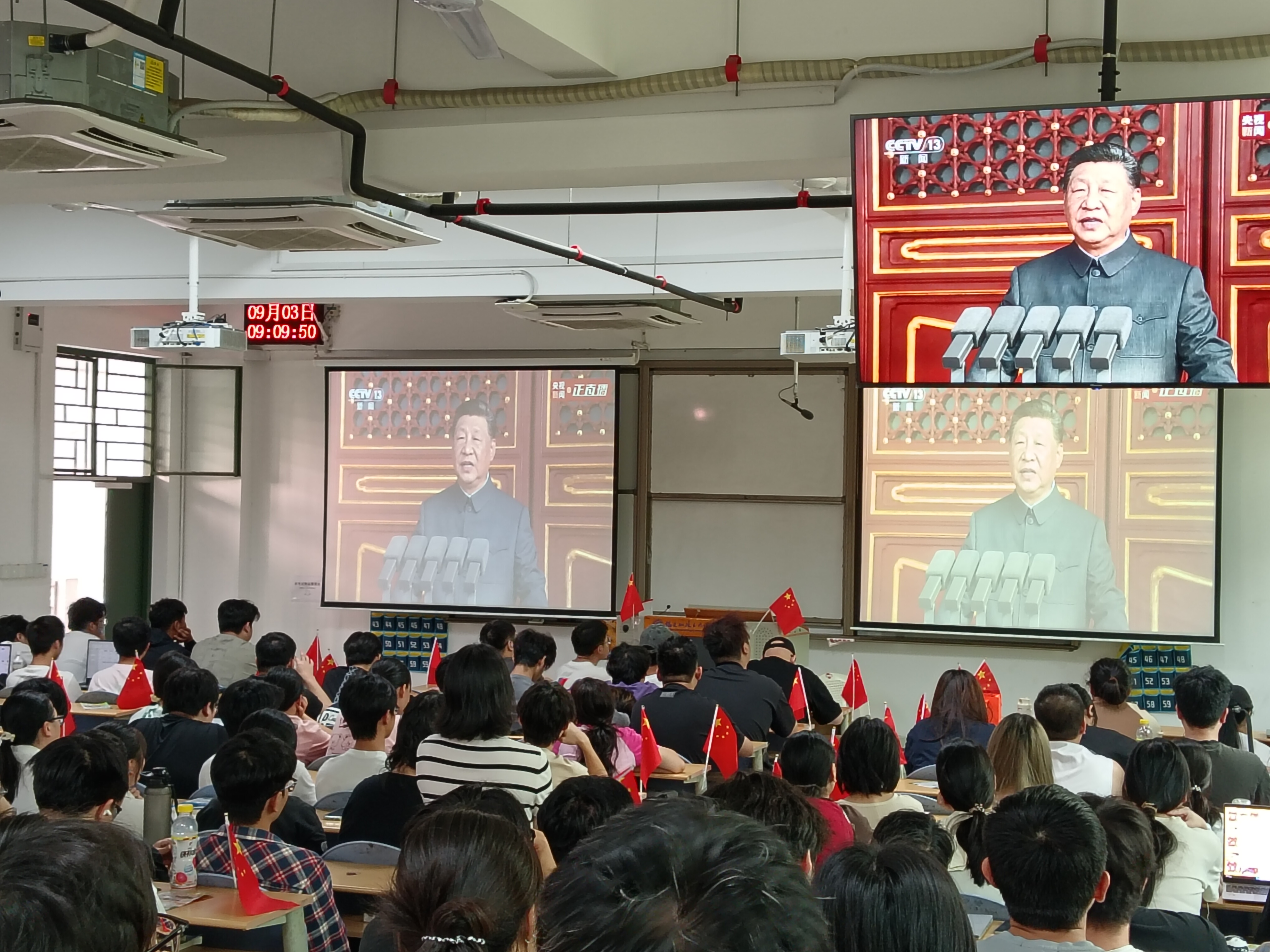 2025年9月3日,紀(jì)念中國(guó)人民抗日戰(zhàn)爭(zhēng)暨世界反法西斯戰(zhàn)爭(zhēng)勝利80周年,安全與環(huán)境學(xué)院組織全院師生集中收看了莊嚴(yán)盛大的九三閱兵式。學(xué)院在藝新樓二樓公共安全融合實(shí)訓(xùn)基地安全宣教室、各年級(jí)班級(jí)同步設(shè)立分會(huì)場(chǎng),確保師生全員參與。閱兵式上,英姿颯爽的解放軍方陣、震撼人心的武器裝備展示以及鏗鏘有力的口號(hào)聲,讓現(xiàn)場(chǎng)師生深受感染,愛(ài)國(guó)熱情高漲。