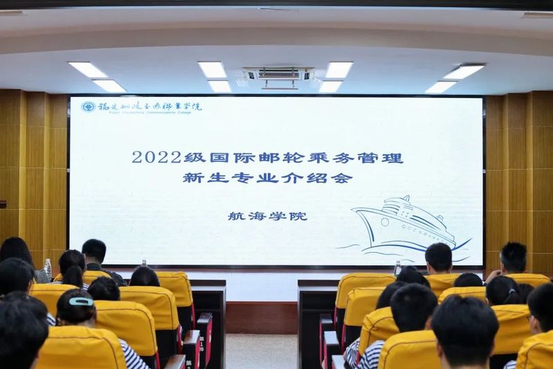 2022年9月15日晚,航海學(xué)院舉辦了國(guó)際郵輪乘務(wù)管理新生專(zhuān)業(yè)介紹會(huì),本次介紹會(huì)由國(guó)際郵輪乘務(wù)管理教研室主任黃超夷主持。