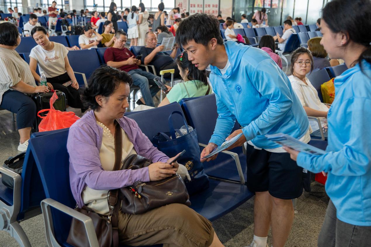 圖4:宣講團(tuán)在長(zhǎng)汀南汽車站為乘客講解禁毒反詐知識(shí)