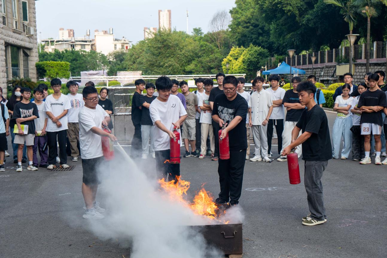 隨著警報(bào)聲響起,活動(dòng)第二部分實(shí)戰(zhàn)演練拉開序幕,同學(xué)們配合引導(dǎo)人員按照預(yù)設(shè)路線有序從消防通道撤離到創(chuàng)新樓外安全地點(diǎn),演練整體過程有條不紊。隨后,工作人員向大家演示了消防器材的正確用法,同學(xué)們積極參與其中,通過實(shí)踐掌握滅火器的基本用法,將安全意識(shí)內(nèi)化為本能反應(yīng),構(gòu)建“消防始于行,安全植于心”的校園安全氛圍。