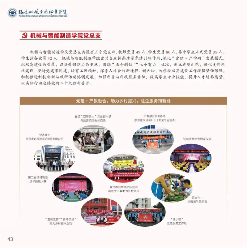 十九大以來,福建船政交通職業(yè)學(xué)院堅(jiān)持以習(xí)近平新時(shí)代中國特色社會(huì)主義思想為指導(dǎo),堅(jiān)持社會(huì)主義辦學(xué)方向,深入貫徹黨的十九大和十九屆歷次全會(huì)精神,堅(jiān)守“為黨育人、為國育才”的初心和使命,慎終如始推進(jìn)學(xué)校黨的政治建設(shè)、思想建設(shè)、組織建設(shè)、作風(fēng)建設(shè)、紀(jì)律建設(shè)、制度建設(shè),黨的組織體系和學(xué)校治理體系相得益彰,黨建引領(lǐng)推動(dòng)創(chuàng)新船政、質(zhì)量船政、文化船政協(xié)奏齊鳴,政治生態(tài)、學(xué)術(shù)生態(tài)、文化生態(tài)持續(xù)向好,辦學(xué)效率、辦學(xué)效能、辦學(xué)效益顯著提升!