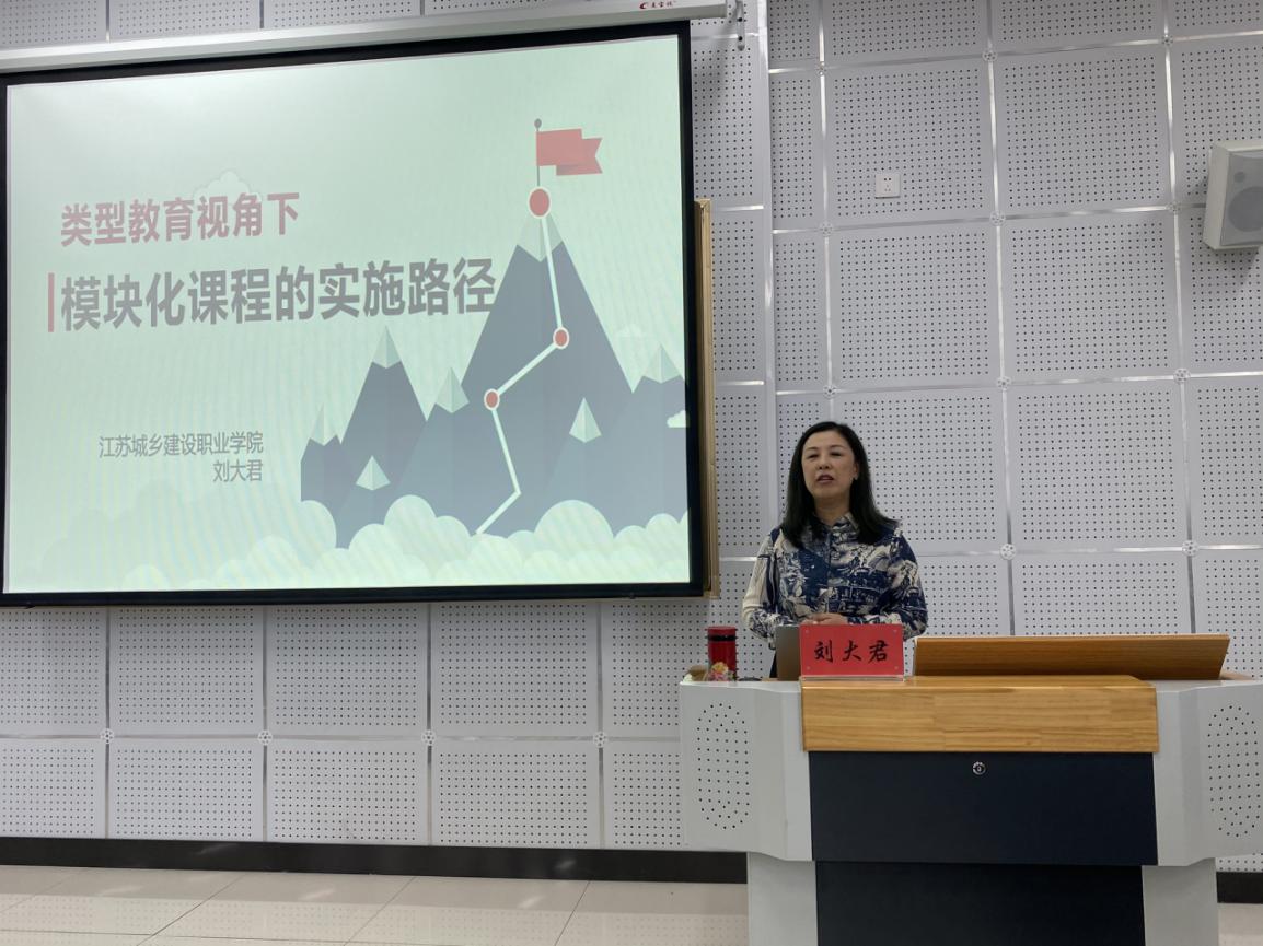 江蘇城鄉(xiāng)建設(shè)職業(yè)學(xué)院教育技術(shù)與信息中心主任、全國(guó)教師教學(xué)能力大賽評(píng)審專家劉大君以《類型教育視角下模塊化課程的路徑》為題,從課程的模塊化改革、模塊化課程的設(shè)計(jì)、項(xiàng)目式教學(xué)的實(shí)施等三部分內(nèi)容分析授課,結(jié)合教師教學(xué)能力大賽精典案例,給了我院教學(xué)創(chuàng)新團(tuán)隊(duì)教師極大的啟發(fā)。