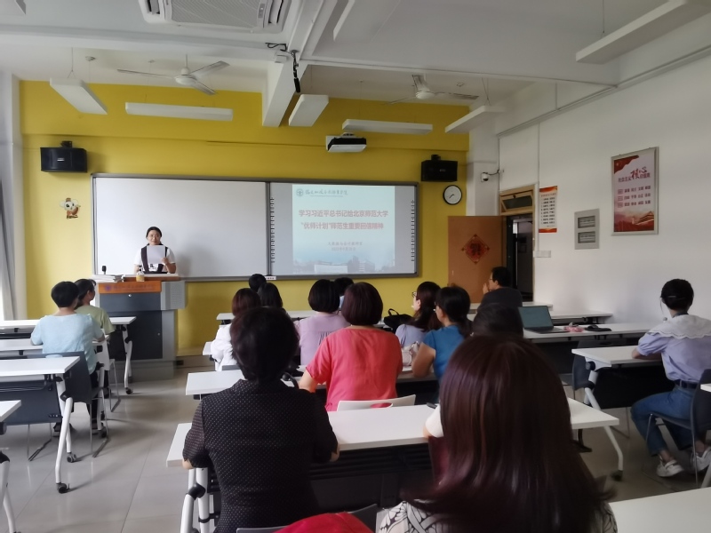 9月26日,經(jīng)濟與管理學(xué)院召開學(xué)習(xí)貫徹習(xí)近平總書記給“優(yōu)師計劃”師范生重要回信精神專題學(xué)習(xí)會。院領(lǐng)導(dǎo)、各教研室主任、各支部書記、副書記、全體輔導(dǎo)員、全體行政人員、實驗員、新進教師參加了此次專題學(xué)習(xí)。會議由黨總支書記俞素平主持。