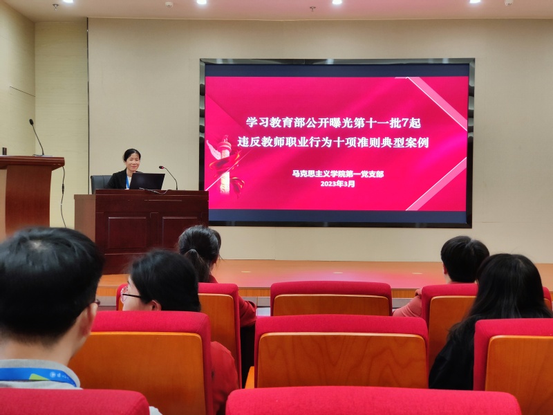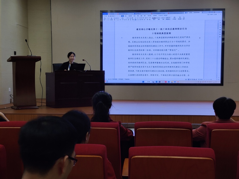 省級(jí)樣板支部馬克思主義學(xué)院第一黨支部書記洪凌艷領(lǐng)學(xué)《教育部公開(kāi)曝光第十一批7起違反教師職業(yè)行為十項(xiàng)準(zhǔn)則典型案例》。以生動(dòng)詳實(shí)的案例、通俗易懂的語(yǔ)言,對(duì)全院教師加強(qiáng)警示教育,希望大家警鐘長(zhǎng)鳴,引以為戒,共同營(yíng)造“風(fēng)清氣正”的師德師風(fēng)氛圍。