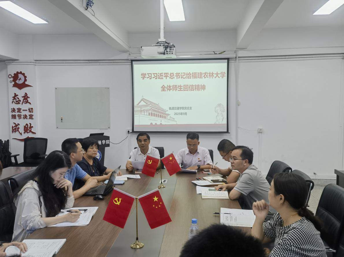 9月29日,軌道交通學(xué)院黨總支召開理論學(xué)習(xí)中心組(擴(kuò)大)會議,專題學(xué)習(xí)研討習(xí)近平總書記給福建農(nóng)林大學(xué)全體師生的重要回信。會議指出,習(xí)近平總書記的回信立意高遠(yuǎn)、內(nèi)涵深刻、情感真摯,充分體現(xiàn)了黨中央對教育事業(yè)的高度重視、對廣大師生和科技工作者的親切關(guān)懷,為新時代高校落實(shí)立德樹人根本任務(wù)、服務(wù)國家戰(zhàn)略需求指明了前進(jìn)方向、注入了強(qiáng)大動力?;匦挪粌H是對福建農(nóng)林大學(xué)師生的鼓舞,也是對全國高校師生扎根一線、服務(wù)基層、矢志創(chuàng)新的巨大勉勵,具有重要的政治意義、時代意義和實(shí)踐指導(dǎo)意義。