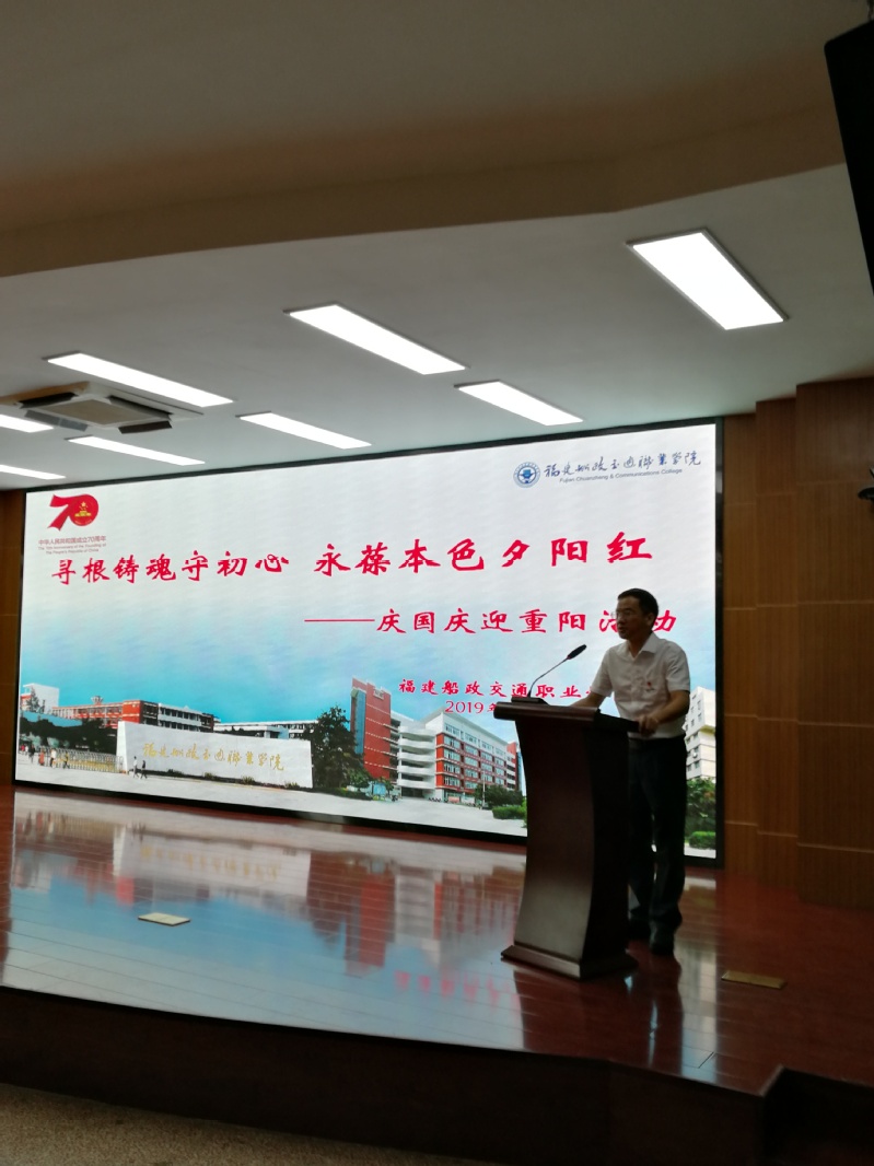 金秋送爽山河美,丹桂飄香慶輝煌,在新中國成立70周年之際,我們迎來了2019年九九重陽節(jié)。值此雙節(jié)來臨之際,今天學(xué)院舉行了“尋根鑄魂守初心,永葆本色夕陽紅” 為主題的慶國慶迎重陽活動。參加活動的有學(xué)院黨委張海明書記、陳錦輝院長、陳宜大副書記、高汝武副院長、張祖柱副院長、陳艷紅副院長,以及學(xué)院離退休教職工,離退休工作領(lǐng)導(dǎo)小組成員、關(guān)心下一代工作委員會成員。