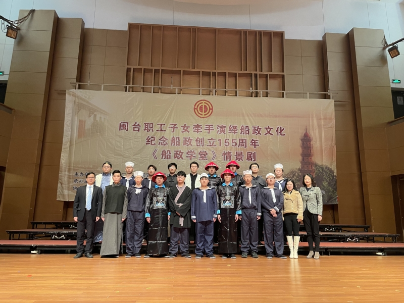12月23日,在船政創(chuàng)立155周年之際,由福建省總工會(huì)、中國致公黨福建省委員會(huì)、中工網(wǎng)、福建船政交通職業(yè)學(xué)院、馬尾船政研究會(huì)共同主辦的《船政學(xué)堂》情景劇在福建大劇院隆重上演。《船政學(xué)堂》是與在閩臺(tái)灣職工子共同攜手演繹賡續(xù)船政百年初心,唱響“閩臺(tái)一家親”的主題樂章。福建省總工會(huì)領(lǐng)導(dǎo)柳公立副主席,中國致公黨福建省委員會(huì)副主委吳棉國、福建船政交通職業(yè)學(xué)院黨委副書記陳宜大、馬尾船政研究會(huì)會(huì)長陳悅,省臺(tái)港澳辦、中工網(wǎng)等相關(guān)單位領(lǐng)導(dǎo)出席活動(dòng)。