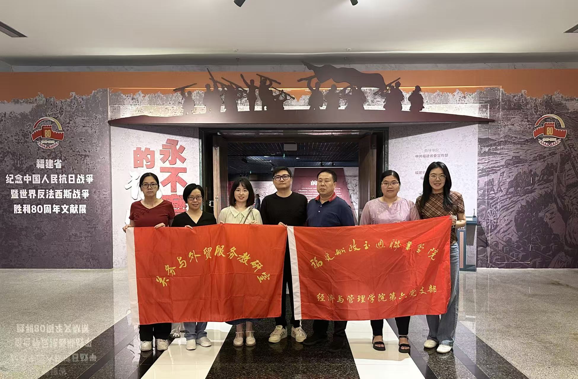 為紀(jì)念中國人民抗日戰(zhàn)爭暨世界反法西斯戰(zhàn)爭勝利80周年,9月5日,經(jīng)濟(jì)與管理學(xué)院第六黨支部暨關(guān)務(wù)與外貿(mào)服務(wù)教研室全體黨員前往福建省博物館,參觀“紀(jì)念中國人民抗日戰(zhàn)爭暨世界反法西斯戰(zhàn)爭勝利80周年文獻(xiàn)展”。