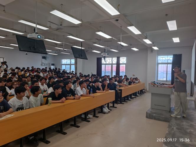 2025年9月17日,工業(yè)機(jī)器人技術(shù)專(zhuān)業(yè)教研室組織2025級(jí)249名新生于北區(qū)26號(hào)樓602教室舉辦專(zhuān)業(yè)介紹會(huì),由教研室主任高華主持,教研室全體教師出席,并邀請(qǐng)校企合作企業(yè)寧德思客琦智能裝備有限公司代表和大三學(xué)生代表參加。介紹會(huì)旨在幫助新生全面了解專(zhuān)業(yè)內(nèi)涵、樹(shù)立學(xué)習(xí)目標(biāo)、科學(xué)規(guī)劃學(xué)業(yè)與職業(yè)發(fā)展,共分為專(zhuān)業(yè)介紹、企業(yè)專(zhuān)家講座和世賽金獎(jiǎng)學(xué)生分享三個(gè)環(huán)節(jié)。