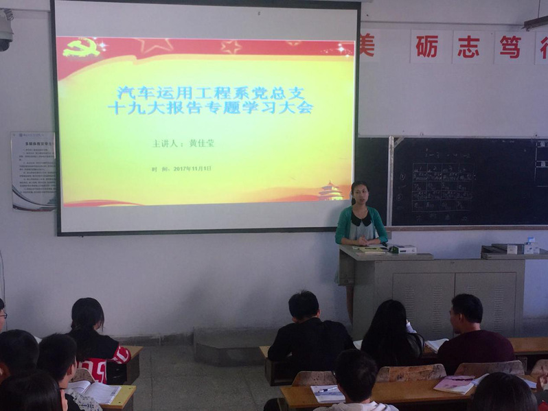 我系第一黨支部書記黃佳瑩老師就如何學(xué)習(xí)黨的十九大精神和同學(xué)們做了講解,結(jié)合身邊實際為同學(xué)們答疑解惑。在這個黨的新階段,同學(xué)們對黨的影響加深,并且更加的愛黨忠于黨。