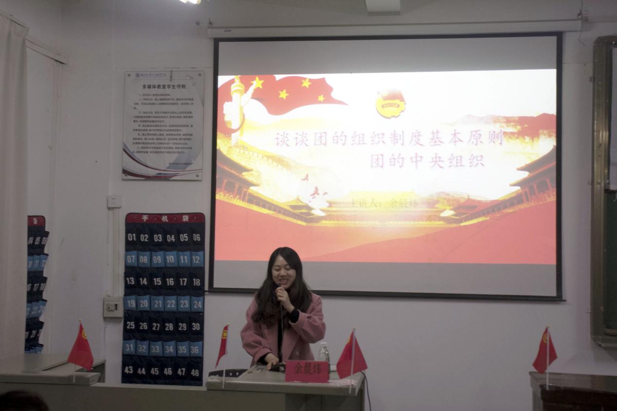 團課上輔導(dǎo)員余晨煒老師向同學(xué)們講述了團的組織制度基本原則,并重點講述了民主集中制