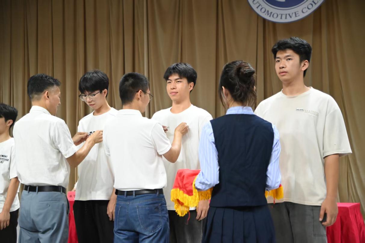 緊接著,在新生代表的帶領(lǐng)下,全體2025級(jí)新生進(jìn)行莊嚴(yán)宣誓。鏗鏘有力的誓言回蕩在文體中心,彰顯著新生們對(duì)未來的堅(jiān)定信念和為汽車事業(yè)奮斗的決心,也標(biāo)志著他們正式開啟了在汽車學(xué)院的逐夢(mèng)之旅。