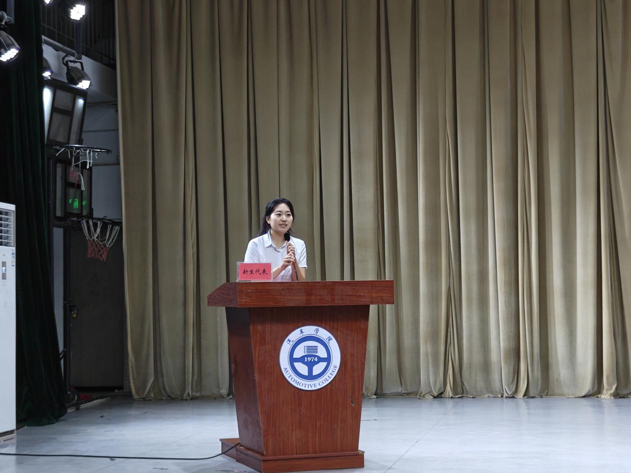 隨后,新生代表孫靜文發(fā)言。她滿懷激動(dòng)與憧憬,分享了自己對(duì)大學(xué)生活的期待,表達(dá)了與同學(xué)們共同努力、在汽車學(xué)院追逐夢(mèng)想的決心,展現(xiàn)出新生們蓬勃的朝氣與積極向上的精神風(fēng)貌。