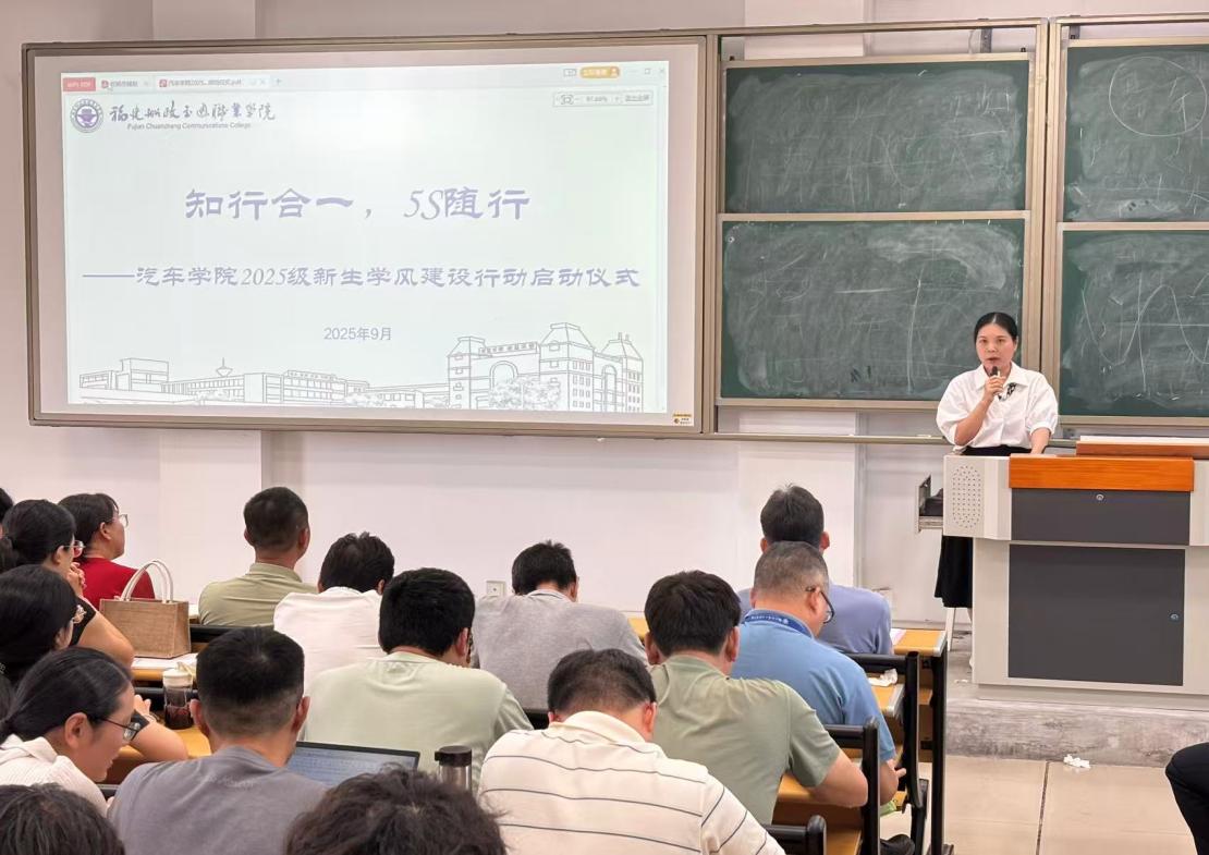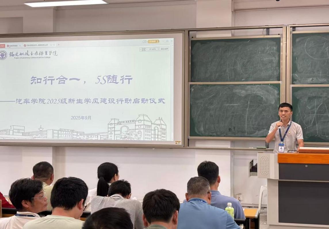 為深入學習貫徹黨的二十大精神和習近平總書記關于教育工作的重要指示精神,進一步加強汽車學院學風建設,提升人才培養(yǎng)質量,汽車學院于9月24日在北區(qū)26號樓605教室開展以“知行合一、5S隨行”為主題的2025級新生學風建設啟動儀式。學院黨政領導、全體教師、輔導員及2024級學生干部、2025級學生代表100多人參加此次活動。儀式由學院副院長林可春主持。