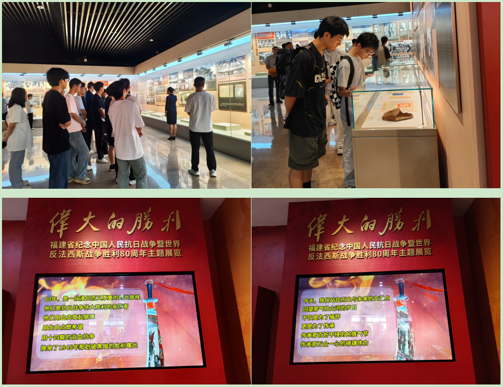 2025年9月28日9時(shí),汽車學(xué)院黨總支組織師生黨員、積極分子及學(xué)生代表共50人,前往福建省革命歷史紀(jì)念館,參觀由省委宣傳部主辦的“偉大的勝利——福建省紀(jì)念中國(guó)人民抗日戰(zhàn)爭(zhēng)暨世界反法西斯戰(zhàn)爭(zhēng)勝利80周年主題展”,通過(guò)沉浸式學(xué)習(xí)重溫抗戰(zhàn)歷史,厚植家國(guó)情懷。