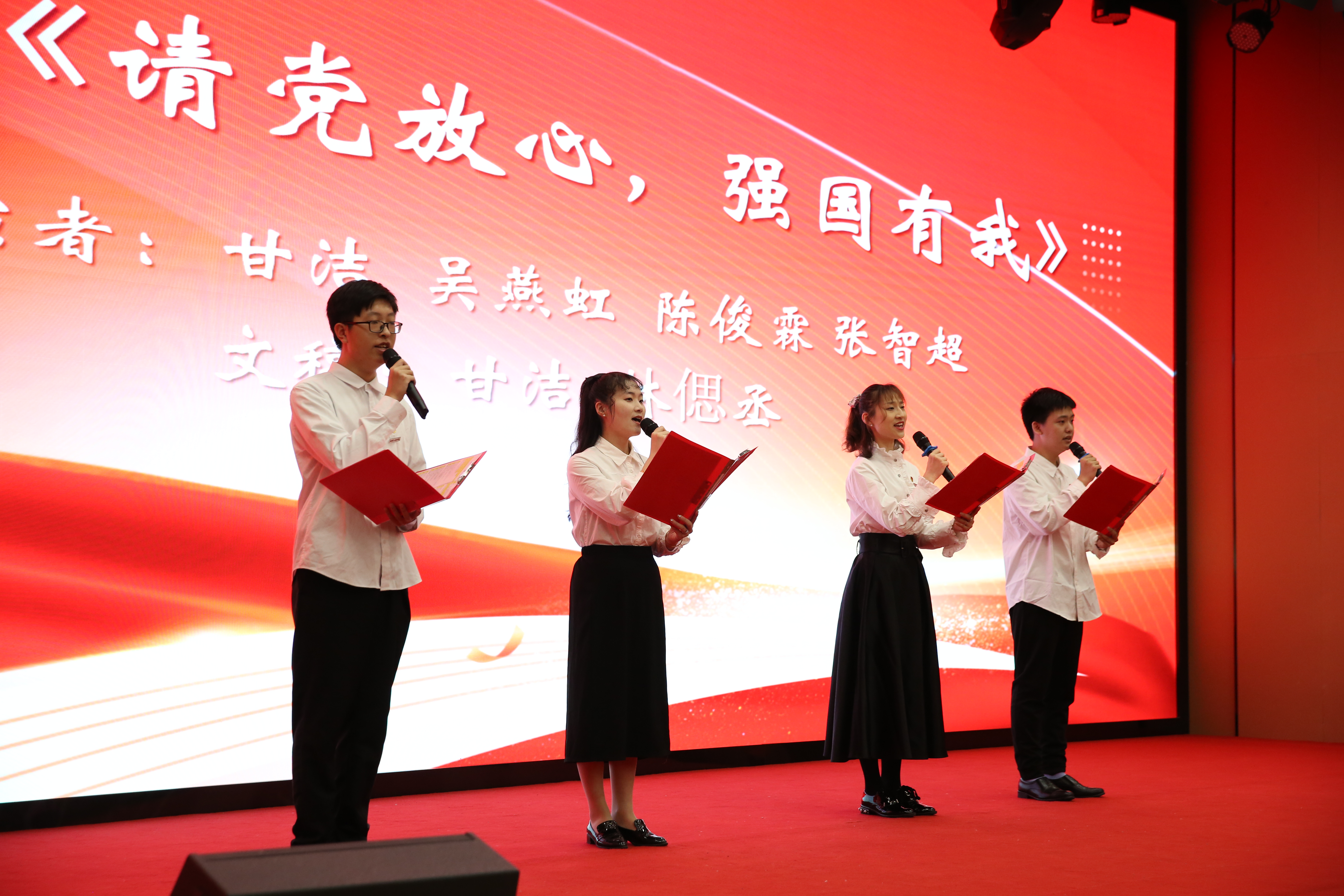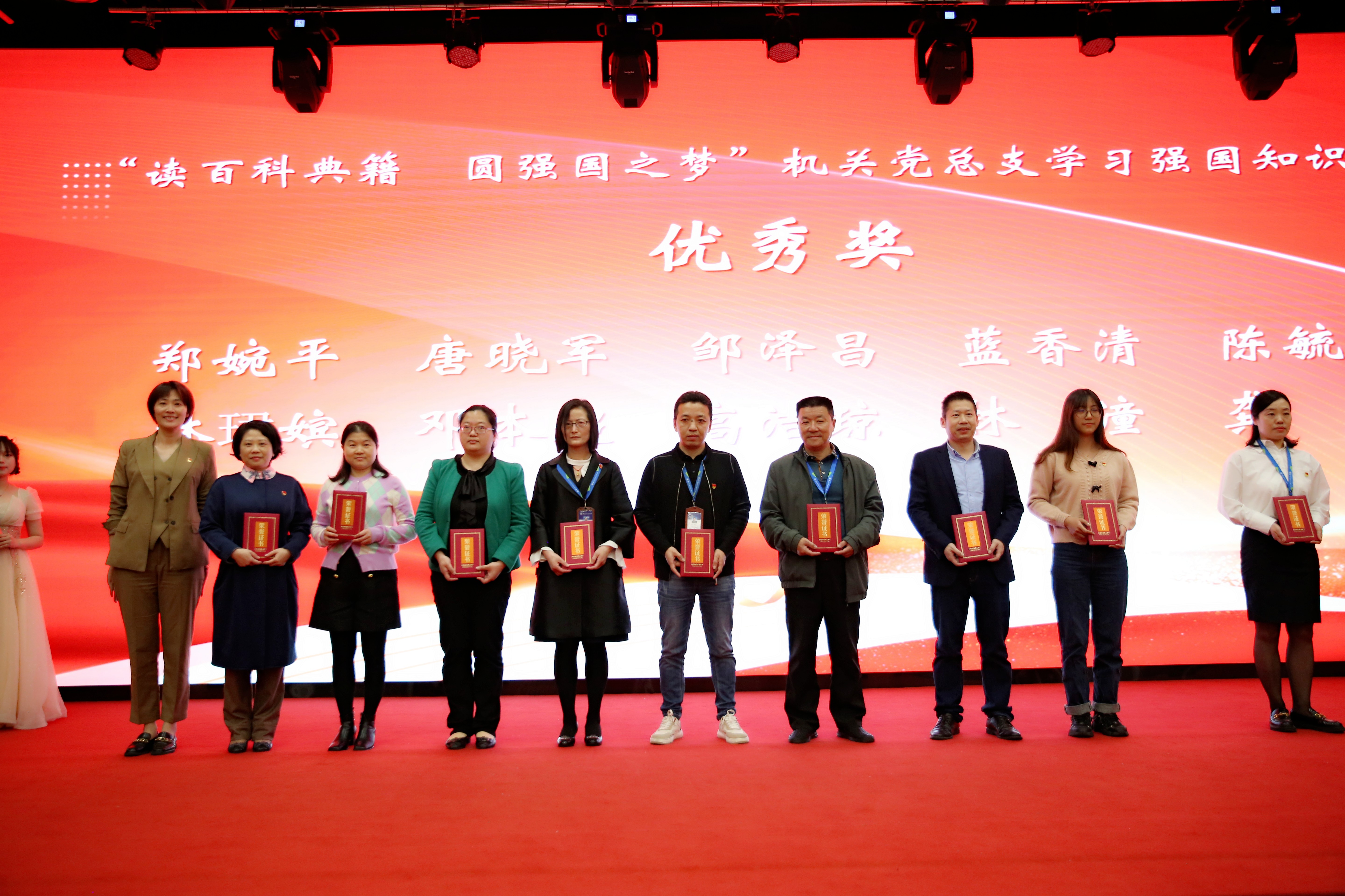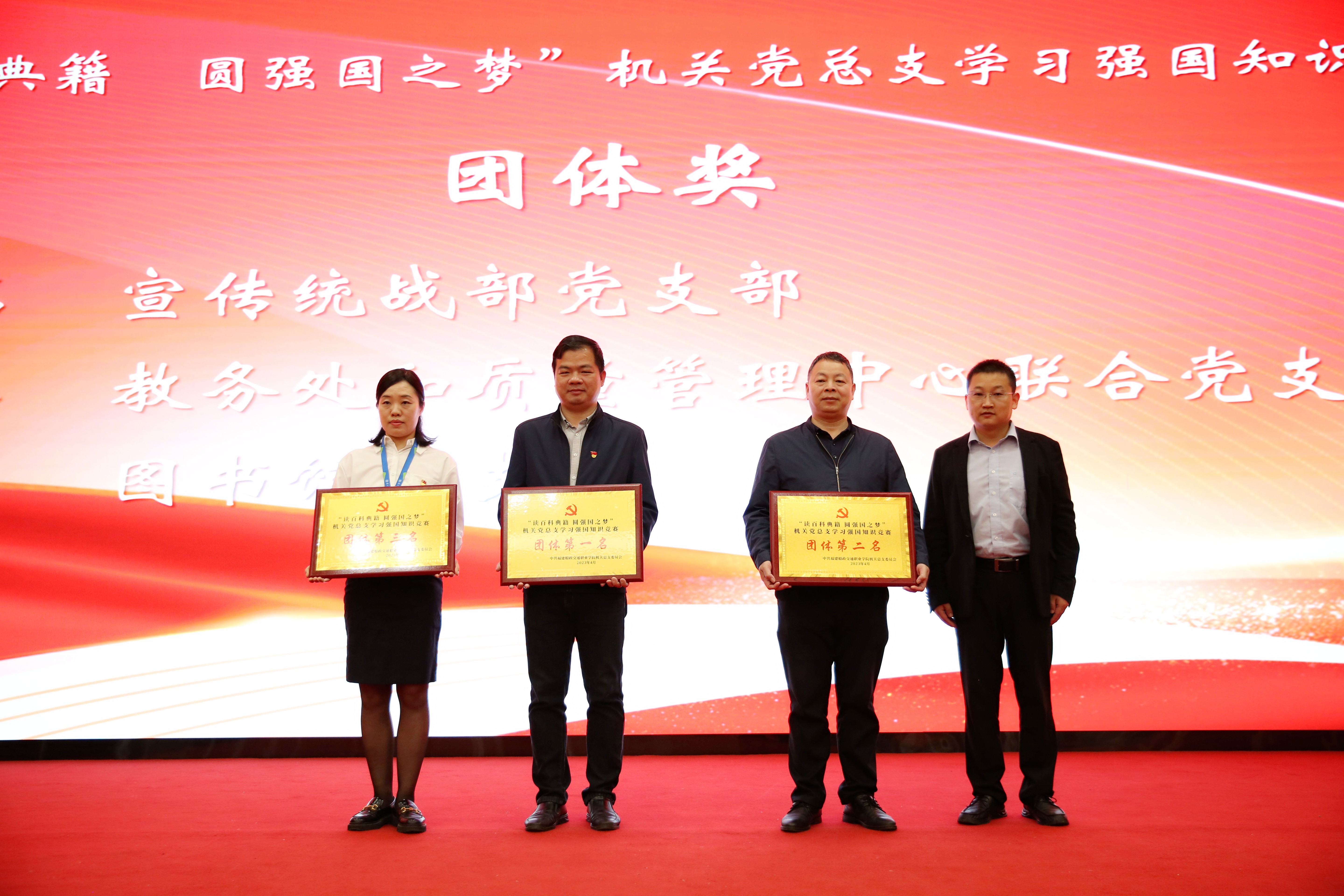 同時,我校師生為大家帶來了《請黨放心,強國有我》精彩的朗誦表演。最后,還舉辦了“讀百科典籍,圓強國之夢”機關(guān)黨總支學習強國知識競賽及學生各類獎項的頒獎。