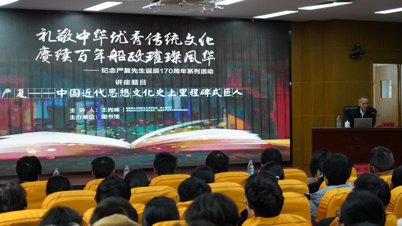 紀念嚴復先生誕辰170周年,邀請福建師范大學馬克思主義學院王崗峰教授作 《嚴復——中國近代思想文化史上里程碑式巨人》專題講座