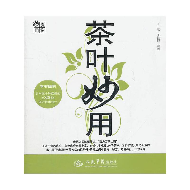 王君編著的《茶葉妙用》分為上、下兩篇,上篇介紹了茶葉的不同品種及其性味、功效及食養(yǎng)常識(shí)等;下篇介紹了多種疾病的茶葉療法,列舉了數(shù)百種巧用茶葉防病治病良方,凸顯“簡(jiǎn)、便、廉、驗(yàn)”之特色,《茶葉妙用》對(duì)于每一個(gè)家庭都非常實(shí)用,成為廣大讀者防病強(qiáng)身、康復(fù)養(yǎng)生的良師益友。