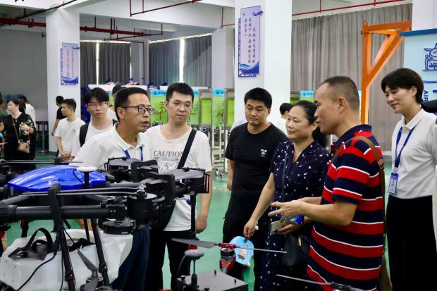 在航空港實訓大廳,介紹了模擬機艙的各項功能,演示了客艙服務流程和應急設備操作,展現(xiàn)了高度仿真的職業(yè)教學環(huán)境與注重實操能力培養(yǎng)的教學理念。在無人機實訓室,現(xiàn)場演示并解析了無人機的結構與應用技術,凸顯了學院在航空領域扎實的教學基礎和先進的實景化教學條件。在維修實訓室,參觀了空客A320實訓真機,講解了現(xiàn)代民用飛機的系統(tǒng)結構、飛行原理及航空技術前沿發(fā)展,介紹了圍繞真機開展的實訓課程設計情況。