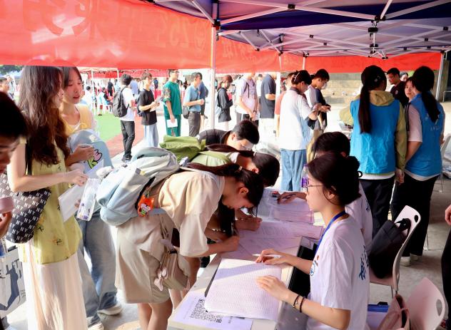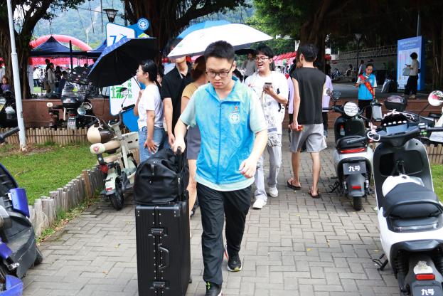 身著統(tǒng)一藍(lán)色馬甲的志愿者們,在人群中穿梭忙碌著,為新生們搬運(yùn)行李、指引路線、答疑解惑,用行動傳遞著“船政人”的團(tuán)結(jié)與溫情。