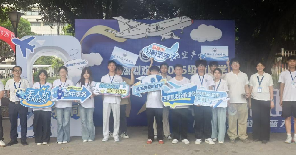 “通用航空產(chǎn)業(yè)學(xué)院”院名橫向排開,字體遒勁,像跑道般托起每個新生的航空夢。左側(cè)專業(yè)依次列出—無人機(jī)應(yīng)用技術(shù)、空中乘務(wù)、通用航空器維修、飛機(jī)機(jī)電設(shè)備維修,新翼已展,航路共赴。祝愿2025級全體新生在通用航空產(chǎn)業(yè)學(xué)院振翅高飛,翱翔萬里!讓我們的夢想從這里啟航!