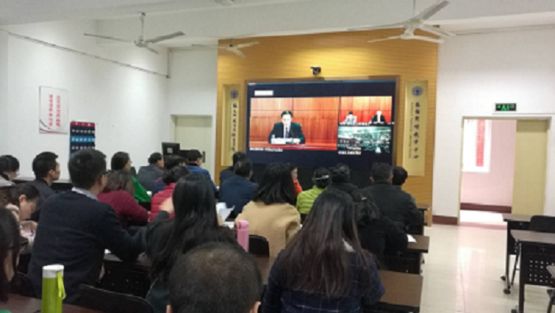 2017年12月6日上午在學院二號樓2—1遠程多媒體教室,陳艷紅副院長、學生管理處、教務處、安全管理辦公室負責人、各系部書記和2018屆畢業(yè)班輔導員收看了2017屆全國普通高校畢業(yè)生就業(yè)創(chuàng)業(yè)工作網絡視頻會議。該視頻會議在北京召開,教育部副部長林蕙青出席會議并講話。