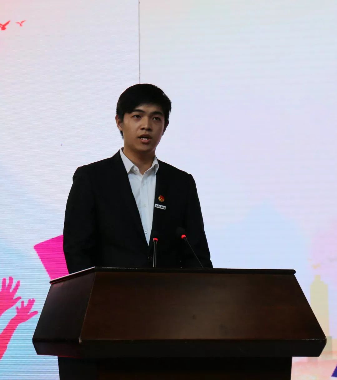 在校生代表張宇昂:“雄關(guān)漫道真如鐵,而今邁步從頭越?!弊8D銈冇峦鼻叭プ非笃椒仓械淖吭剑8D銈儾粧仐?、不放棄揚(yáng)起勝利的風(fēng)帆去創(chuàng)造平靜中的升華,祝福你們用自身的魅力去實(shí)踐青春無悔的諾言,在最廣袤的天空下像雄鷹一樣展翅翱翔。