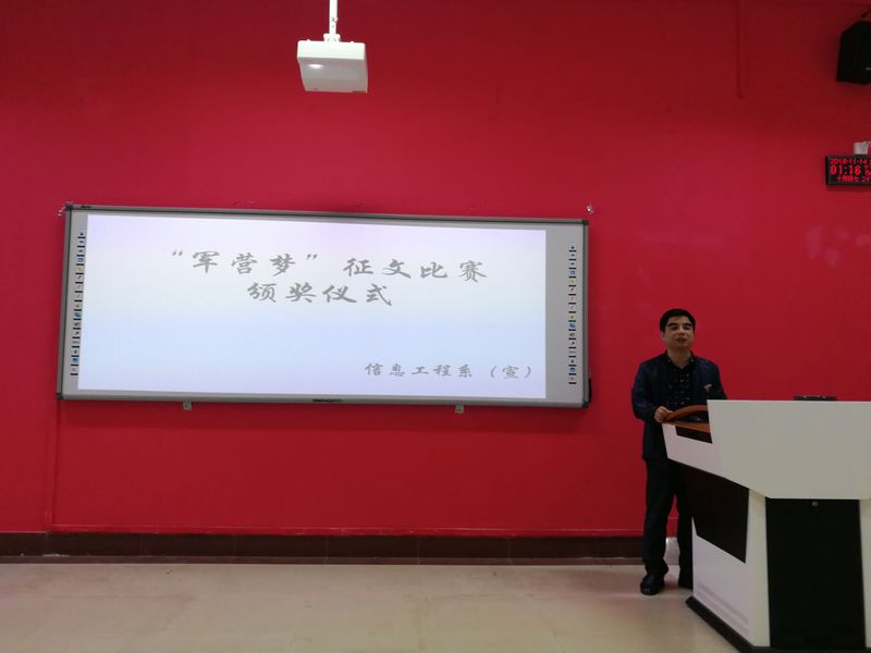 為弘揚愛國主義精神,營造愛國熱情的學院風范。2018年11月14日下午13:00在船政北區(qū)2#1-5舉行了“軍營夢”征文比賽頒獎儀式。信息系系書記孫基老師、征兵負責人唐曉軍老師以及“軍營夢”征文比賽負責人2017級輔導員黃華梅老師。本次頒獎儀式由2017級電信班唐宋杰主持。