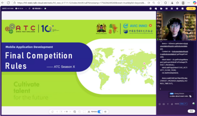 歷經(jīng)一月密集培訓(xùn),移動應(yīng)用開發(fā)賽項(xiàng)決賽成功舉辦,來自肯尼亞、埃及、加納、烏干達(dá)、坦桑尼亞、贊比亞、津巴布韋7個國家的56支隊(duì)伍、224名師生盡展所學(xué)、佳績頻傳。中航國際成套設(shè)備有限公司在感謝信中高度評價:“鄭志嫻、李伙欽兩位老師耐心授課、悉心指導(dǎo),以及黃鴻杰等5位同學(xué)組成的線上學(xué)員管理團(tuán)隊(duì)克服時差認(rèn)真負(fù)責(zé),受到廣大學(xué)員喜愛和歡迎。