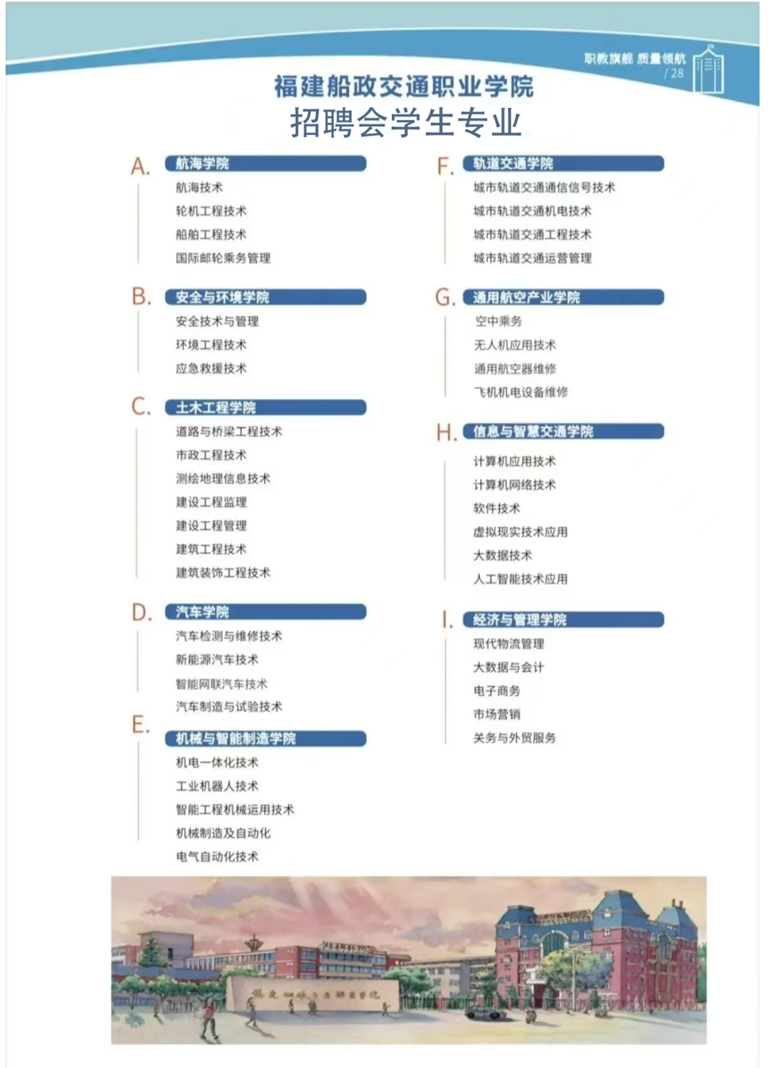 為進(jìn)一步協(xié)助促進(jìn)母校大學(xué)生就業(yè)創(chuàng)業(yè)工作,切實(shí)服務(wù)校友企業(yè)發(fā)展,更好搭建校友企業(yè)與畢業(yè)生的雙向選擇平臺(tái),校友會(huì)決定舉辦福建船政交通職業(yè)學(xué)院2024年校友企業(yè)專場(chǎng)招聘會(huì)?,F(xiàn)將相關(guān)通知如下:時(shí)間:2024年8月31日上午9:00,地點(diǎn):福建船政交通職業(yè)學(xué)院校內(nèi)(福建省福州市倉(cāng)山區(qū)首山路80號(hào))