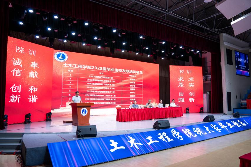 2025年6月10日,土木工程學(xué)院在福道園文體中心舉行2025屆畢業(yè)生畢業(yè)典禮。作為典禮重要環(huán)節(jié),土木工程專業(yè)委員會正式聘任22名2025屆畢業(yè)生擔(dān)任校友聯(lián)絡(luò)員,建立校友與母校的常態(tài)化聯(lián)絡(luò)機(jī)制。