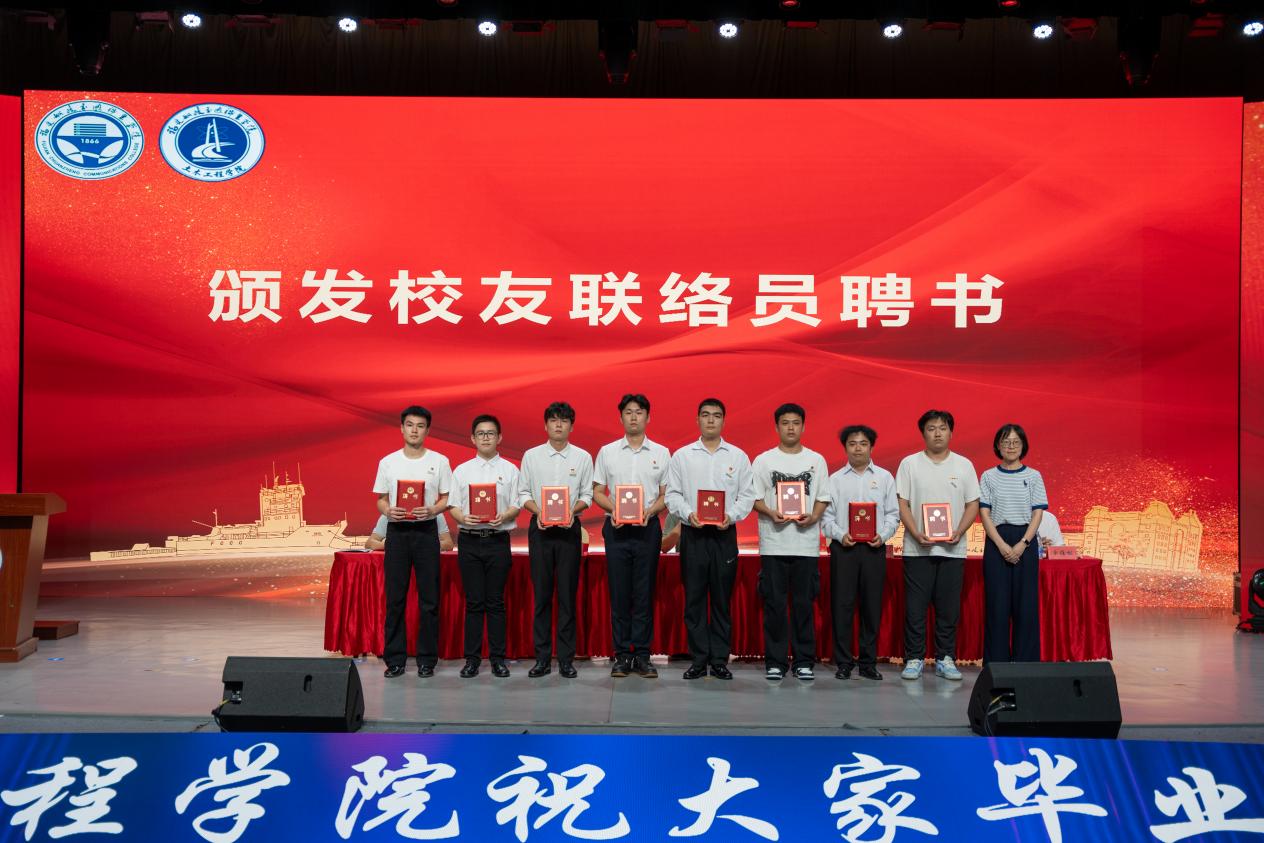 學(xué)院黨總支書記高杰教授,黨總支副書記、院長黃穎教授,校友會常務(wù)副會長、土木工程專委會會長俞素平教授向校友聯(lián)絡(luò)員頒發(fā)聘書。